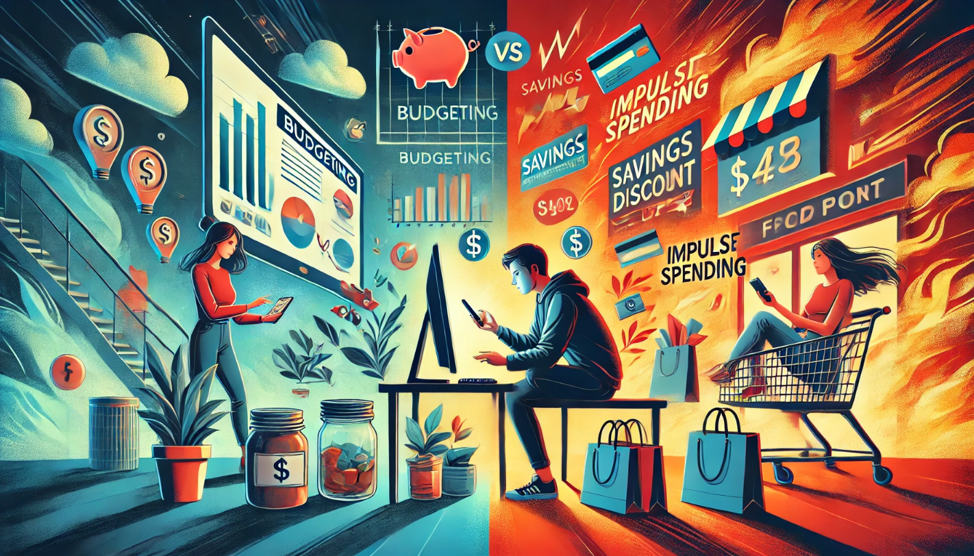 예산 설정(Planned Budgeting)은 미리 소비 계획을 세우고 자원을 효과적으로 배분하는 방식입니다. 반면, 즉흥 소비(Impulse Spending)는 순간적인 욕구나 감정에 따라 계획 없이 소비하는 행동을 의미합니다.